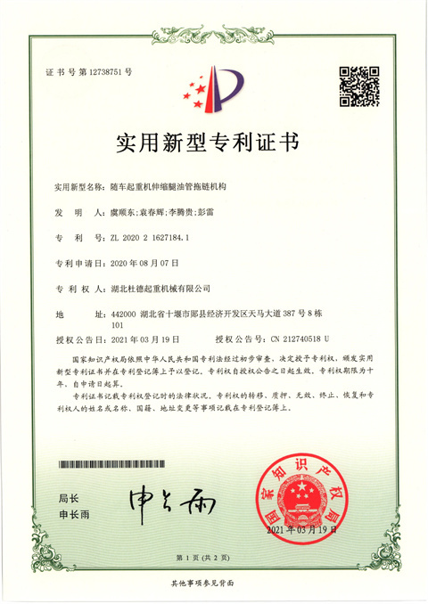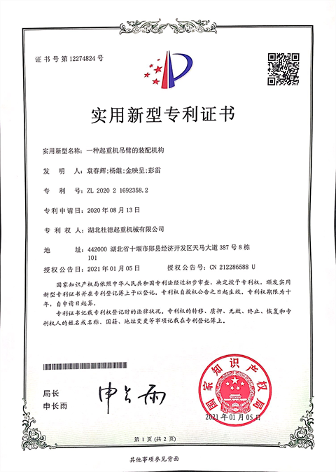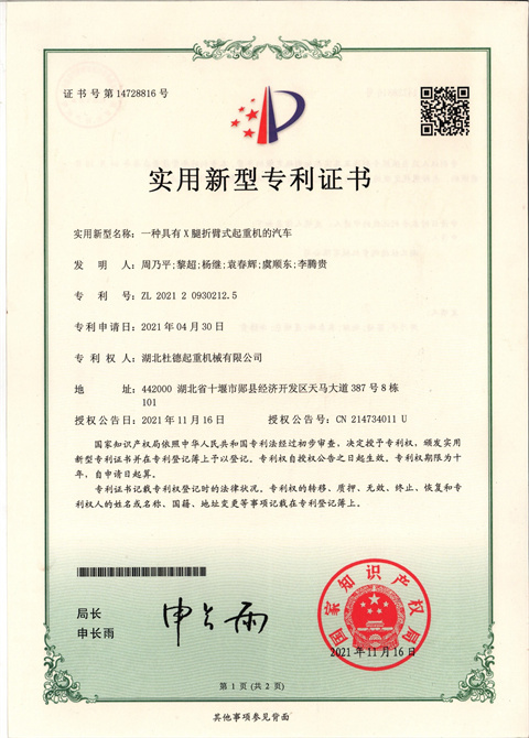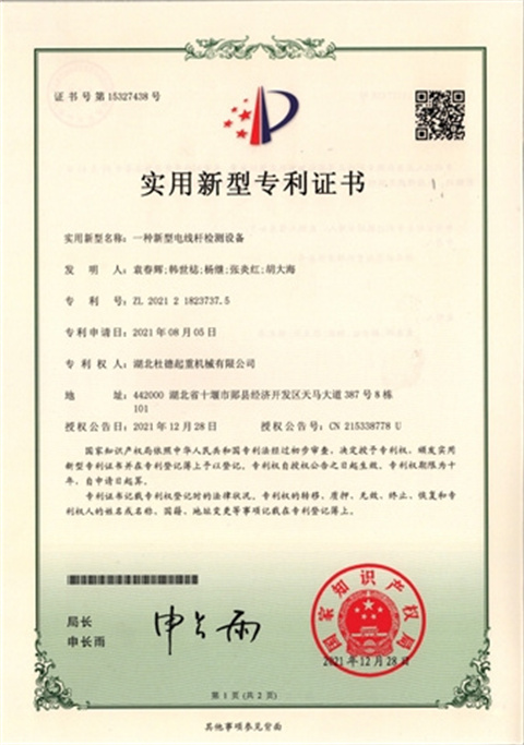 實(shí)用新型專利證書