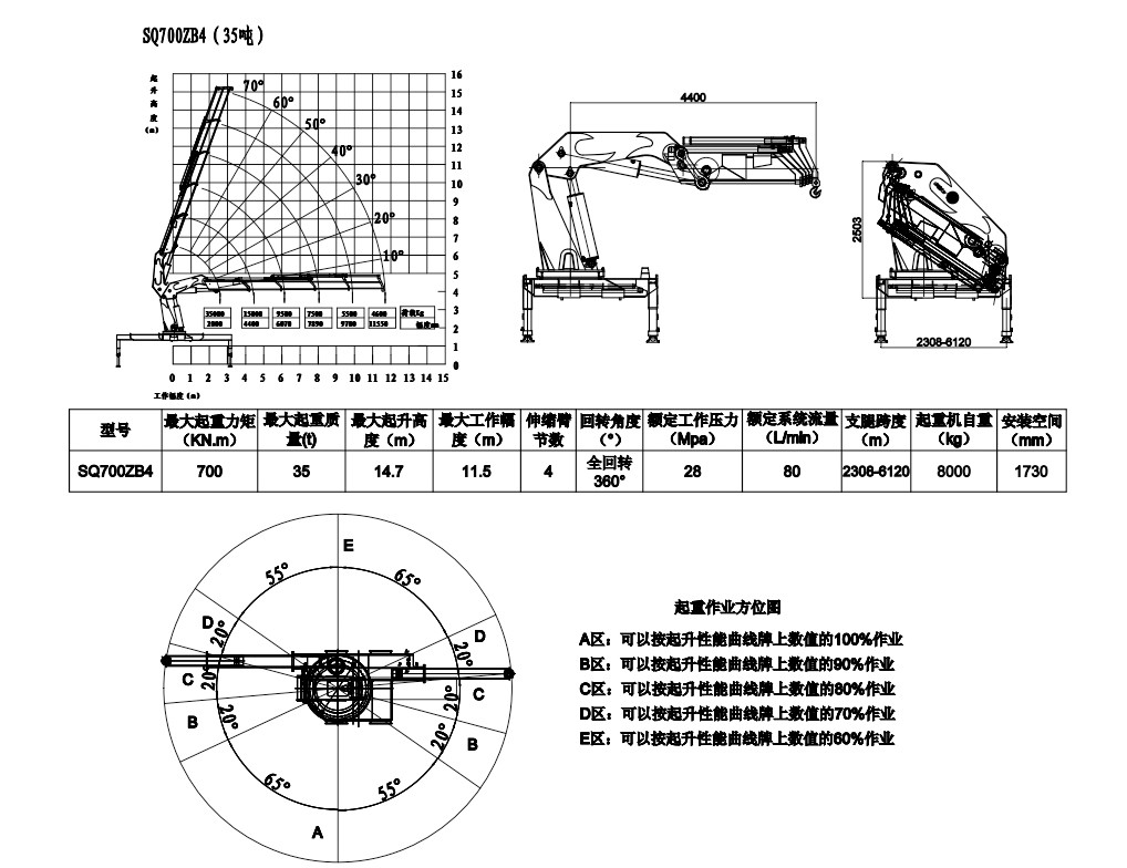 吊機吊機型號SQ700ZB4折臂